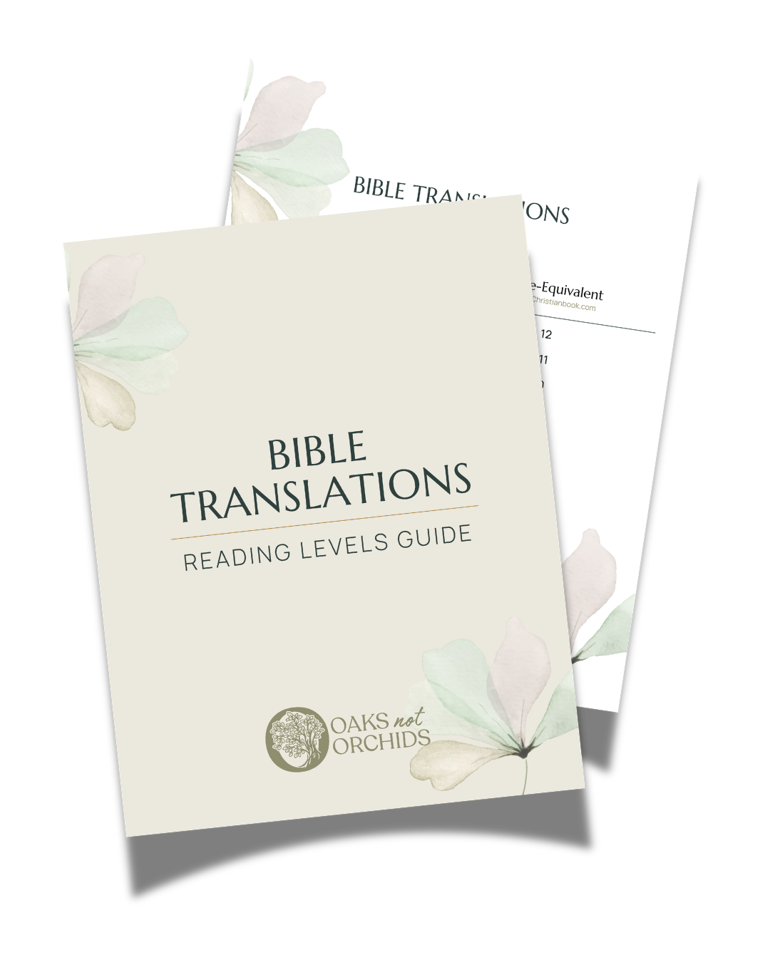 This guide was created to help mothers choose a Bible translation that supports steady, faithful Scripture reading at home. With a clear comparison of common translations and reading levels, you’ll be able to choose the translation that best supports your child’s understanding, confidence, and growth in the Word.